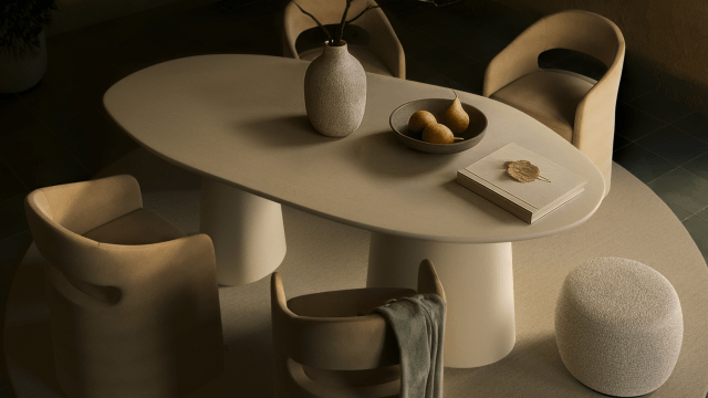 The epitome of refined elegance the Alessia Dining Table adds a touch of allure with its organic and unique shape. Elevate your home with an atmosphere of quiet luxury.